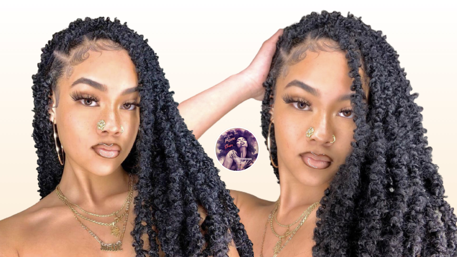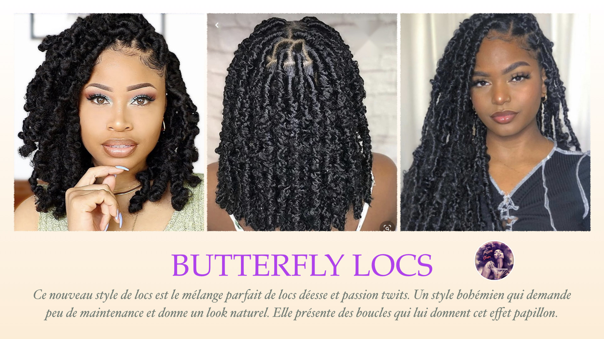 Ce nouveau style de locs est le mélange parfait de locs déesse et passion twists. Un style bohémien qui demande peu de maintenance et donne un look naturel. Elle présente des boucles qui lui donnent un effet papillon.